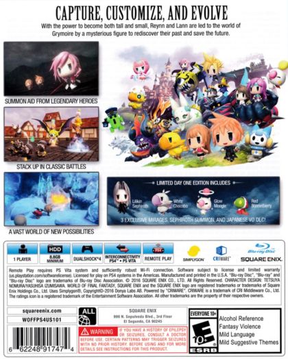 Embark on an adventure unlike any before to an all new WORLD OF FINAL FANTASY. With charming, stylized visuals for both the young and the young at heart, players will collect, raise, and battle iconic monsters by stacking them to form adorable yet strategic monster towers. The memorable legends of FINAL FANTASY come to life in this imaginative, colorful world as an epic story fit for the smallest of heroes unfolds.