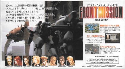 Discover the origins of the Front Mission series in this explosive handheld saga that was never before localized for North America. Reborn exclusively on the Nintendo DS, Front Mission introduces exciting new features, such as dual screen presentation and multiplayer modes, that update the classic that gave birth to seven beloved sequels. Using Touch Screen functionality, players command a squad of customizable mechs known as wanzers and direct them through turn-based skirmishes across the battlefields of the 21st century.