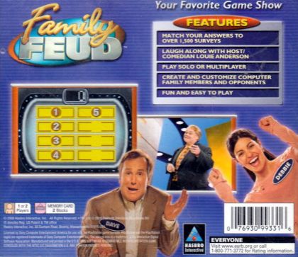 Match your answers to over 1,500 surveys. Laugh along with host/comedian Louie Anderson. Play solo or multiplayer. Create and customize computer family members and opponents. Fun and easy to play.
