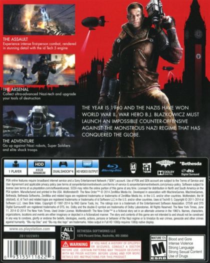Armed with a mysterious advanced technology, the Nazi's unrelenting force and intimidation brought even the most powerful nations to their knees. Awakened from a 14-year coma to a world changed forever, war hero B.J. Blazkowicz emerges into this unimaginable alternate version of the 1960s. One in which the monstrous Nazi regime has won World War II, and now rule the globe with an iron fist. You are B.J. Blazkowicz, the American war hero, and the only man capable of rewriting history.