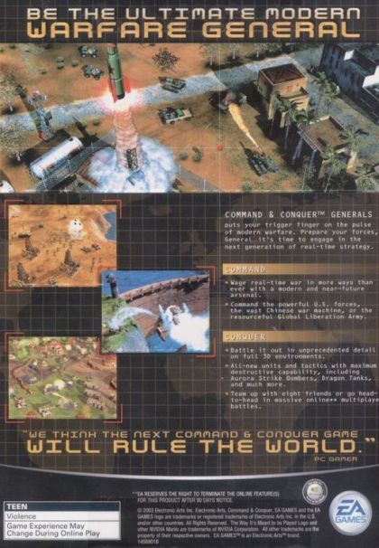 Generals will include a full single-player campaign along with a full multiplayer component played over a LAN or the Internet. Generals will also feature: