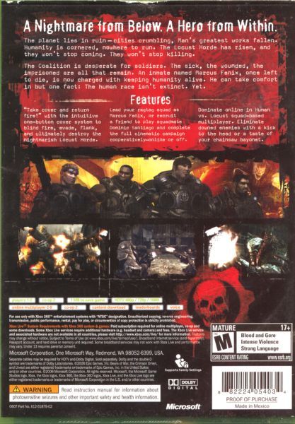 In this third-person tactical action/horror game, players live and breathe the role of Marcus Fenix. A disgraced former war hero, Marcus seeks personal redemption as he leads his fire team against an onslaught of merciless warrior fiends. Gamers immerse themselves in an experience so intensely emotional and gut-wrenching that playing will be like controlling a blockbuster action movie.