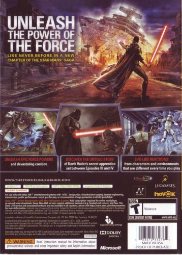 As its name implies, The Force Unleashed completely re-imagines the scope and scale of the Force by taking full advantage of newly developed technologies that will be seen and experienced for the first time: Digital Molecular Matter (DMM), by Pixelux Entertainment, and euphoria by NaturalMotion Ltd. Paired with the powerful Havok Physics™ system, these new technologies create gameplay only possible on the new generation of consoles. DMM incorporates the physical properties of anything in the environment so that everything reacts exactly like it should - wood breaks like wood, glass shatters like glass, plants on the planet Felucia bend like plants on the planet Felucia would, and more. Meanwhile, as a revolutionary behavioral-simulation engine, euphoria enables interactive characters to move, act and even think like actual human beings, adapting their behavior on the fly and resulting in a different payoff every single time.