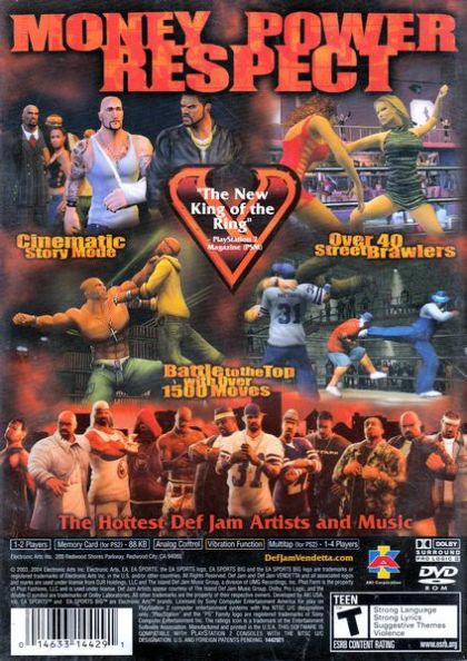 Developed by renowned AKI Corporation and the award-winning EA Canada creative team responsible for NBA STREET, Def Jam VENDETTA takes two cutting-edge interactive gaming teams and ties it all together with creative input from the most sought after hip hop lifestyle company of all time, Def Jam.