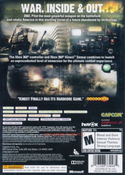 Steel Battalion Heavy Armor delivers an unprecedented level of control and interaction. VT movement,aiming and firing of the main guns are undertaken using the Xbox 360 controller A wide variety of other combat crucial actions are done through Kinect for Xbox 360 with upper body gestures - from starting the engine to operating the scope or manning the turret-mounted machine gun. Kinect for Xbox 360 also provides a means of interacting with your fellow crew members, from ensuring a panicked crew member stays focused, to a high five for successfully completing a mission.