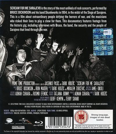 A legendás Iron Maiden frontembere, Bruce Dickinson és Skunkworks nevű zenekara 1994-ben életüket kockáztatva az ostromlott Szarajevóba utaztak, hogy koncertet adjanak az ott élőknek. A felvételen olyan, ritkaságszámba menő felvételek is szerepelnek, melyek meghatározták Dickinson szólókarrierjét. A Scream For Me Sarajevo sokkal több, mint egy hagyományos koncertfilm: bemutat egy, a harcok árnyékában tevékenykedő művészeti közösséget is, melynek alkotásaira nagy hatással vannak a háborús veszteségek. Emellett betekintést enged a szarajevói emberek hétköznapjaiba, mindennapos küzdelmeikbe a háború alatt. „Senki nem védett bennünket, nem volt semmi tervünk, a golyók röpködtek körülöttünk, de b.szd meg, akkor is megcsináltuk. A buli óriási volt, akkor a legnagyobb a világon, nekünk és a közönségnek. A világ nem tudott róla, de ez nem volt érdekes. Nekem a világról és az emberekről alkotott képem megváltozott.” – mondta a koncertről Dickinson.