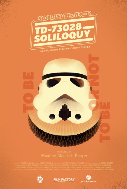 Star Wars meets Shakespeare in this timely nod to both the 40th celebration of Star Wars release and the recent 400th anniversary of the Bard's death. Hamlet's famous soliloquy is presented as the inner voice of a Stormtrooper, demonstrating the way Shakespeare's language still echoes down to us through the centuries and remains as relevant today as ever---not to mention as well in a galaxy far, far away...