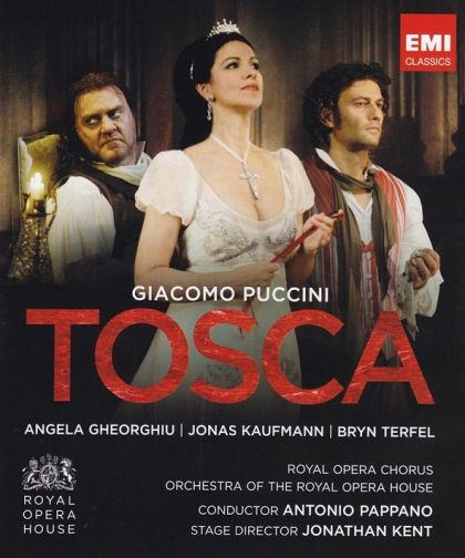 Az Angyalvárból megszökött politikai fogoly Angelotti, a Római Köztársaság egykori konzulja a Sant'Andrea della Valle templomba menekül, ahol családja egy kápolnát tart fenn. A kápolnában nővére, Attavanti márkinő női ruhákat rejtett el, hogy azokban szökhessen. Angelotti a közeledő sekrestyés elől a kápolnába menekül. Megérkezik Mario Cavaradossi is, aki egy Magdolnát ábrázoló képet fest a templomnak. Magdolnát Angelotti nővéréről mintázta. A sekrestyés segít Cavaradossi munkájában, majd távozik. Angelotti előjön rejtekhelyéről, és elmeséli Cavaradossinak, miként szabadult az Angyalvárból. Cavaradossi felajánlja segítségét a félelemtől reszkető, az éhségtől legyengült embernek. Beszélgetésüket Tosca érkezése szakítja meg. Angelotti ismét elrejtőzik, Cavaradossi egy kosárban nekiadja ebédjét, hogy erőre kapjon. A féltékeny énekesnő meghallotta, hogy a festő valakivel beszélget, és ezt szóvá is teszi. Féltékenysége főleg akkor kap lángra, amikor a festményen felismeri Attavanti márkinőt. Cavaradossi megnyugtatja, és biztosítja szerelméről. Az énekesnő távozása után Angelotti ismét előjön rejtekhelyéről. Cavaradossi felajánlja neki a házát, és azt javasolja, hogy veszély esetén a kerti kútban rejtőzzék el. Ágyúlövés jelzi, hogy rabok szöktek meg az Angyalvárból. Angelotti és Cavaradossi sietve távozik. A templomba érkezik Scarpia, Róma rendőrfőnöke. Segédje, Spoletta megtalálja a kápolnában az üres kosarat és a női ruhákat (többek közt egy legyezőt is). A templom megtelik Te Deumra készülő papokkal és hívőkkel. Tosca visszatér, de nem találja szerelmét. Scarpia kihasználja az énekesnő féltékenységét, és megmutatja neki Attavanti márkinő legyezőjét, majd szerelmet vall az idegesen távozó énekesnőnek.