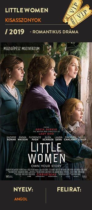 Greta Gerwig, a 2017-es 5 Oscar-díjra jelölt Lady Bird író-rendezője egy nagy amerikai klasszikust visz filmre, és igazi szupercsapatot válogatott hozzá: a korábbi filmjében is szereplő Saoirse Ronan és Timothée Chalamet mellé Emma Watsont, Meryl Streepet, Florence Pugh-ot és Chris Coopert is megnyerte, hogy a maga modern, szemtelen stílusában mesélje újra a klasszikus történetet.