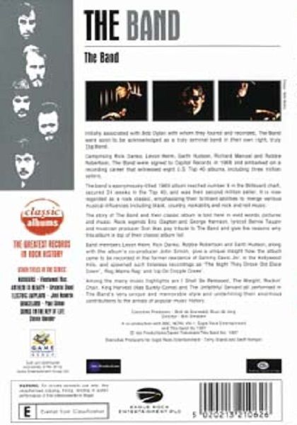 Comprised of Rick Danko, Levon Helm, Garth Hudson, Richard Manuel and Robbie Robertson, The Band's self-titled sophomore effort spent 24 weeks in the Billboard Top 40. The album was released at a time when the US album charts were taken over by the psychedelic rock movement, and despite this, the album had the aforementioned chart success and would go on to sell over one million copies. This edition of the "Classic Albums" series focuses on The Band's follow-up to "MUSIC FROM BIG PINK". Featuring classics such as "Up On Cripple Creek", "The Night They Drove Old Dixie Down", and "Rag Mama Rag", the story of the album is told through interviews with surviving members of The Band, fellow musicians Eric Clapton, Don Was, and George Harrison, and vintage footage. The Band is a classic album!