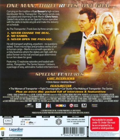 A legfontosabb szabály, hogy nem változtathatsz a szabályon! Nincsenek nevek, csak cél van. Frank Martin (Chris Vance) született James Bond, ő a szállítók Szállítója, a nők bálványa és a rossz fiúk réme. De még ő is bajban lenne gyönyörű programozója, Carla (Osvárt Andrea), és autószerelője, Dieter (Charly Hübner) nélkül. Frank életében nem telik el nap életveszélyes akciók, hódítások és győzelmek nélkül.