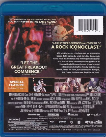 With the help of more than 10,000 dedicated Zappa fans, this is the long-awaited definitive documentary project of Alex Winter documenting the life and career of enigmatic groundbreaking rock star Frank Zappa. Alex also utilizes in this picture thousands of hours of painstakingly digitized videos, photos, audio, writing, and everything in between from Zappa's private archives. These chronicles have never been brought to a public audience before, until now.