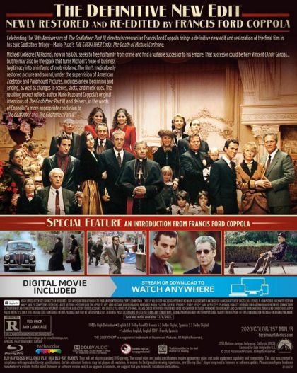 Harminc éve dédelgetett álmát valósította meg Francis Ford Coppola A keresztapa harmadik részének újravágásával. A rendező elmondása szerint a jelenlegi verzió közelebb áll az eredeti elképzeléséhez, melyet annak idején idő hiányában és a Paramount stúdió felől érkező nyomás hatására nem tudott kellőképpen kimunkálni. A jubileum okán feltupírozott harmadik rész apró, de hasznos változásokat eszközöl. De vajon ez elég ahhoz, hogy helyreállítsa a trilógia záróakkordjának kétes megítélését?