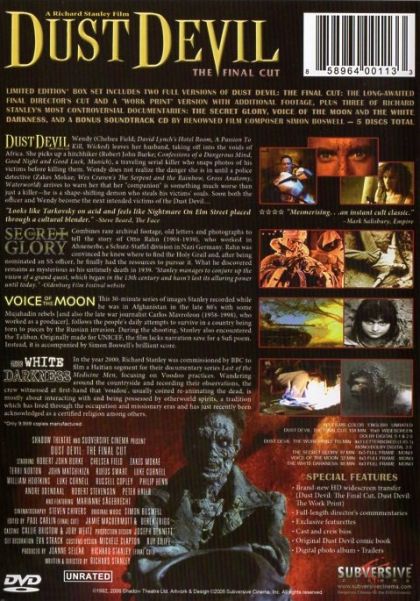 A Hardware című film futurisztikus, posztapokaliptikus és technológiai világa után, a dél-afrikai születésű író-rendező a Dust Devil című modern horror-thrillerrel tért vissza gyökereihez. A filmet teljes egészében a dél-nyugat-afrikai Namíbiában forgatták. "A Dust Devil egy hihetetlenül összetett és elszánt teremtmény, aki kísérletezik és boncol" - nyilatkozta Stanley. "A Dust Devil egy rendőrkrimi-elmebeteg sorozatgyilkos-spagetti western film Afrikáról, amely hatalmas mennyiségű őrülettel kísérli meg a romanticizmust és az összetartozásról és válásról szóló emberi kapcsolatok drámáját összevegyíteni." "Richard Stanley a horror jövője." (Dario Argento) Stanley a film végleges, rendezői változatát csak tizennégy évvel a forgatás után, 2006-ban készíthette el.
