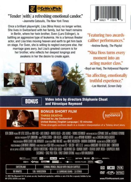 Lisa, aki valaha zseniális dramaturg volt, abbahagyta az írást. Családjával Svájcban él, de a szíve visszahúzza Berlinbe, ráadásul együtt dobban ikertestvére, Sven, a híres színházi színész szívével. Lisa és bátyja kapcsolata mélyebb, mint két testvér viszonya, ők szinte lélektársak. Mivel Sven agresszív típusú leukémiában szenved, a kapcsolatuk ezzel is egyre szorosabbá válik. Lisa nem akarja elfogadni ezt a sorscsapást, és mindent megtesz annak érdekében, hogy Sven visszatérhessen a színpadra. Saját életében minden mást elhanyagol, beleértve a férjével való kapcsolatát, így a házassága is megromlik. Ám Lisa megszállottá válik, és csak a testvérére gondol, aki az ő saját legmélyebb érzéseit tükrözi, és felébreszti benne a vágyat, hogy kreatív legyen, hogy újra azt érezze, igazán él.