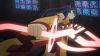 Baku is easily defeated, thanks to Weisz's Arsenal suit. While Shiki battles the Knight Gear controlled by Madame Kurenai, Rebecca fights Nino.