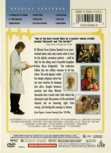 Az egészségügyi ellátás görbe tükörben. Werner Ernst (James Spader) fiatal kórházi rezidens, aki belekeveredik két nővér vitájába, akik más véleményen vannak azt illetően, hogy magatehetetlen, öntudatlan apjukat tartsák-e életben gépekkel, vagy engedjék békében meghalni. Werner rájön, hogy küzdelmüknek nem kizárólag érzelmi oldala van, mert a 10 milliós vagyon öröklése a tét. Werner eközben kissé bolondos felettesével is vitába száll, aki csak a biztosított betegeket hajlandó ellátni.