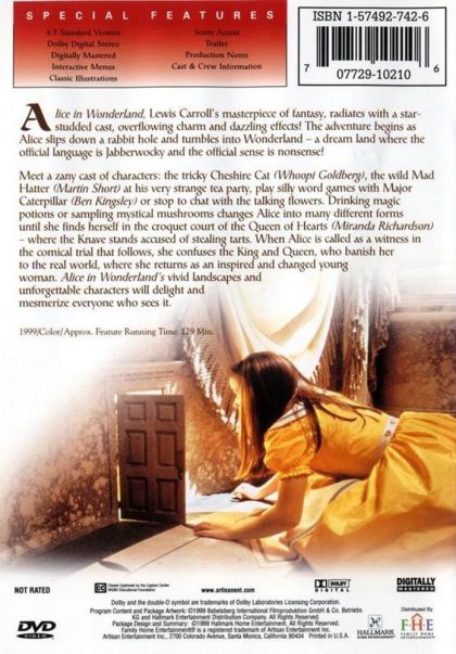 Lewis Caroll klasszikusnak számító műve új feldolgozásban látható, brilliáns trükkökkel, fantasztikus látképekkel, hihetetlen kalandokkal és felejthetetlen karakterekkel. A megbántott kislány Alice megszökik szülei házából. Egy nyúlüreget talál, bemászik és hirtelen a kalandok, hihetetlen és varázslatos világában találja magát. Számtalan teremtménnyel, figurával találkozik, köztük a bűbájos Cheshire Catel, a gömbölyded Tweedle-Dee és Tweedle-Dummal és a gonosz Caterpillarral. Bonyodalmak és izgalmak sora várja, összemegy, majd ismét megnő, beutazza Csodaországot, megismerkedik a Szívek Királyával és Királynőjével a Fehér Nyúllal, aki a Király kamarása az esküdtszék tizenkét guineai malacával és még számtalan fura szerzettel. A hosszú utazás végén aztán újra hazatér, és boldogan meséli szüleinek Csodaország végtelen világát.
