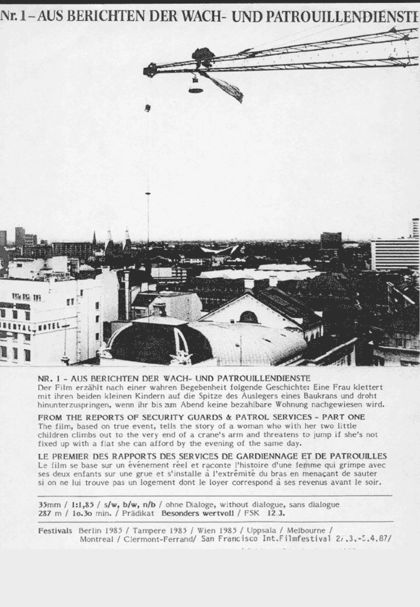 Írógéppel lépünk be, szirénázva távozunk. Helke Sander aktivista és veterán filmrendező soha nem riadt vissza a viták elől, és megnyerte a berlini Arany Medve című rövidfilmet a hidegháború elhalványulásával kapcsolatos incidens hátborzongatóan elkülönülő történetéért. Ritkaság a Deutsche Kinemathek-től!