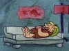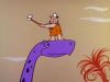 The plot of this very brief pilot would be used and expanded upon in one of the early Flintstones episodes, "The Swimming Pool." Fred Flagstone floats in his pool on a tube and his wife Wilma brings his lunch. Barney startles her with his weird scuba-diving gear, which includes a bow and arrow. Barney accidentally shoots Fred's tube with his arrow, Fred sinks into the pool, and Barney rescues Fred's lunch.
