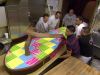 Now back in the States, Buddy creates a 10' long flip-flop cake for a new pier opening at Myrtle Beach. Not only is it huge, it's a ton, requiring concerted effort and muscle from the staff to move. There's also a giant peanut butter and jelly sandwich cake for a 2nd grade class. Progress falters when the old ovens finally give out with a crash, requiring Buddy to step up his plan for new ones. Additionally, for a woman helping others in need, Buddy gives lessons in making better apple cakes (but not his family recipes).