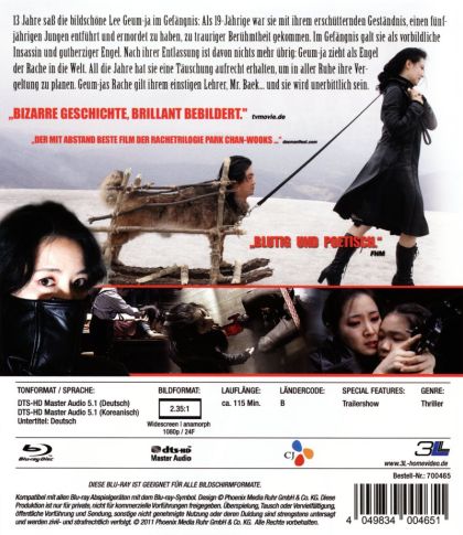 A bosszú megszállottja angyali külsejű és vörössel festi a szemét Park Chan-wook Bosszú-trilógiájának záródarabjában. A film veszélyes utazásra hív egy saját erkölcsi kódex szerint élő nő lelkének legmélyére. Lee Geum-ját tizenhárom év börtönre ítélték egy hatéves kisfiú elrablásának és meggyilkolásának bizonyítatlan vádja miatt. Az egyszerre gyermekien naiv és ördögien bölcs Geum-ja nem sok időt pazarol arra, hogy belopja magát a többi rab szívébe. A stricijét megfojtó volt prostituálttól az idős észak-koreai kémnőig minden egyes cellatársban csupán eszközt lát ahhoz az aprólékosan kidolgozott, rafinált bosszútervhez, amelyet szabadulása utánra tartogat.