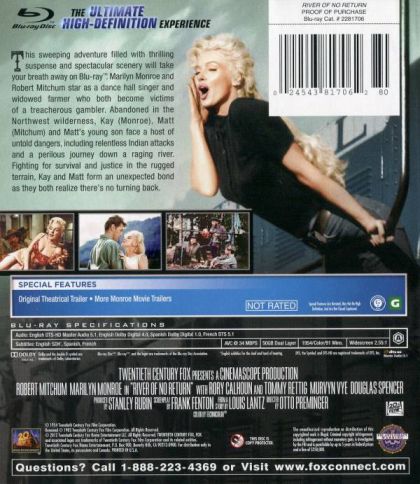 A western tale, set in the days of the California Gold Rush, in which Miss Monroe appears as a saloon singer who falls into the capable arms of Robert Mitchum after she is cruelly abandoned by her husband, Calhoun.The itinerant farmer and his young son help a heart-of-gold saloon singer search for her estranged husband