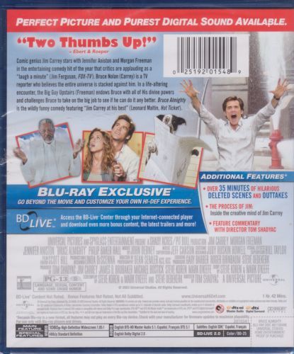 Bruce Nolan toils as a "human interest" television reporter in Buffalo, N.Y. Despite his high ratings and the love of his beautiful girlfriend, Grace, Bruce remains unfulfilled. At the end of the worst day in his life, he angrily ridicules God -- and the Almighty responds, endowing Bruce with all of His divine powers.