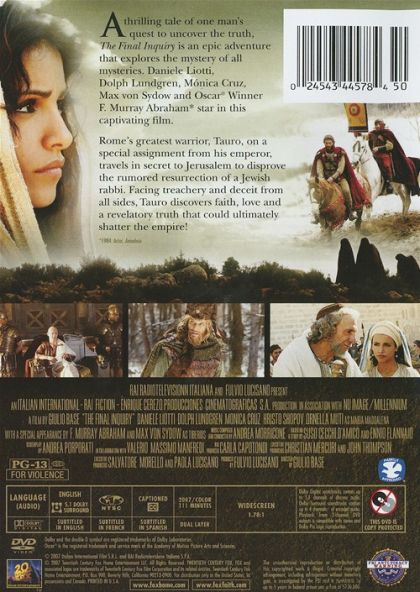 It is the year 33 of the Vulgar Era. The Emperor Tiberius is troubled by strange phenomena, an earthquake and the sky turning black as an eclipse. His astrologers give him fair warning: their omens indicate that the world is in the throes of a great upheaval and that old gods have been annihilated. A new kingdom is about to rise in the East. The Emperor calls Tito Valerio Tauro, the most prominent