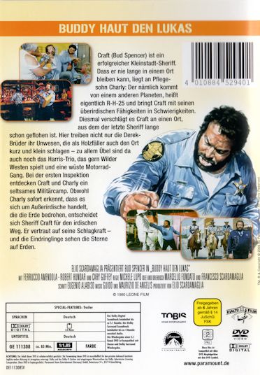 Following the events of The Sheriff and the Satellite Kid, Sheriff Hall and H-725 (using the official identity of Charlie Warren) still get no rest from the military: because the little alien has not yet grasped the meaning of keeping a low profile, they are constantly on the move, and H-725’s father has had to pick them out of a tight spot too many times already.Hall and Charlie eventually arrive at the city of Munroe, where petty crime, from vandalism to armed robberies, is running rampant, more so because the town currently has no sheriff. Charlie pushes Hall into staying in this place, and somewhat reluctantly Hall takes up the job in this chaotic place, with the help of the local radio jock and City Mayor Howard (Ferruccio Amendola). Soon the riff-raff in town learns not to underestimate the new sheriff as he metes out hard-hitting advice to stay out of trouble.