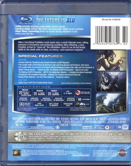 A sequel to 2004's Alien vs. Predator, the iconic creatures from two of the scariest film franchises in movie history wage their most brutal battle ever - in our own backyard. The small town of Gunnison, Colorado becomes a war zone between two of the deadliest extra-terrestrial life forms - the Alien and the Predator. When a Predator scout ship crash-lands in the hills outside the town, Alien Facehuggers and a hybrid Alien/Predator are released and begin to terrorize the town.