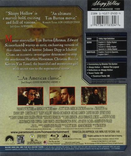 New York detective Ichabod Crane is sent to Sleepy Hollow to investigate a series of mysterious deaths in which the victims are found beheaded. But the locals believe the culprit to be none other than the ghost of the legendary Headless Horseman.