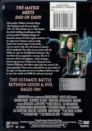The conclusion to The Prophecy Trilogy. Once again, Christopher Walken returns as the Arch-Angel Gabriel. As the War in Heaven and on Earth rages on, Pyriel, the Angel of Genocide, rises to power, intending to destroy all of mankind. The only one who stands in his way is Danyael, who was born of an Angel and a woman.