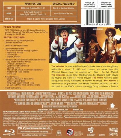 The world's most shagadelic spy continues his fight against Dr. Evil. This time, the diabolical doctor and his clone, Mini-Me, team up with a new foe -- '70s kingpin Goldmember. While pursuing the team of villains to stop them from world domination, Austin gets help from his dad and an old girlfriend.