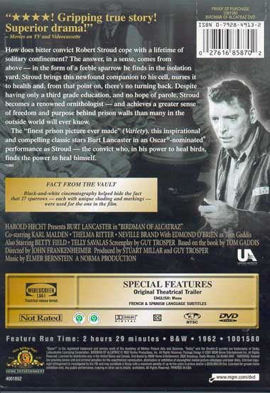 After killing a prison guard, convict Robert Stroud faces life imprisonment in solitary confinement. Driven nearly mad by loneliness and despair, Stroud's life gains new meaning when he happens upon a helpless baby sparrow in the exercise yard and nurses it back to health. Despite having only a third grade education, Stroud goes on to become a renowned ornithologist and achieves a greater sense of freedom and purpose behind bars than most people find in the outside world.