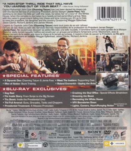 Capitol Policeman John Cale has just been denied his dream job with the Secret Service protecting President James Sawyer. Not wanting to let down his little girl with the news, he takes her on a tour of the White House, when the complex is overtaken by a heavily armed paramilitary group. Now, with the nation's government falling into chaos and time running out, it's up to Cale to save the president, his daughter, and the country.