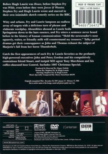 Sketches include Fry as headmaster and Laurie as a parent with child "poisoned by randy sex talk" in Biology Class; Laurie reads Fry poetry suitable for daily and vacation uses; Fry plays a minister who simply wants kids to stay away from his bloody car; Fry plays recruiter and Laurie is applicant to a perverted SAS; Fry is a Tally-Ho librarian who proviides patrons like Laurie with severely edited texts which extol Mother England; Laurie plays an odd psychic who claims he can bend spoons on Fry's talk show; F&L tongue-in-cheek skit poking fun at the thought police which culminates in epic tune, "Bitchmother, Come Light My Bottom." Fry plays a demented barber and Laurie the customer who asks for all of his hair cut and taunts the barber, who is distressed and brings a chainsaw.
