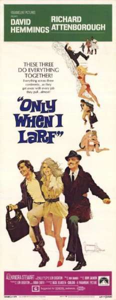 Only When I Larf is a 1968 British comedy film directed by Basil Dearden and starring Richard Attenborough, David Hemmings and Alexandra Stewart. It is adapted from the novel Only When I Larf by Len Deighton. (wikipedia)