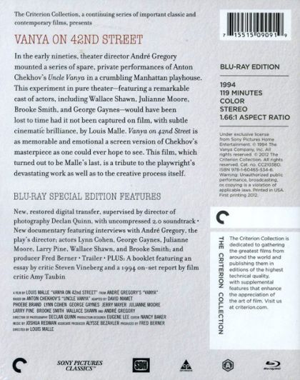 André Gregory, az amerikai avantgarde színház jeles alakja 1989-ben elhatározta, hogy színpadra állítja Csehov Ványa bácsiját. Maga köré gyüjtötte a színészeket, akikkel próbálni kezdett a New York-i 42. utcában évtizedek óta üresen álló, ám még romos állapotában is impozáns Victory Színházban. A modern hangvételű előadást Louis Malle 1991-ben sajátos filmes látásmódján átszűrve örökítette meg, amelyben elejétől a végéig élvezhetjük Csehov remekművét.