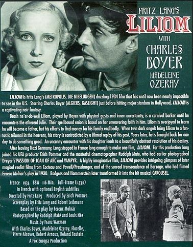 Two women love the same man in a world of few prospects. In Budapest, Liliom is a "public figure," a rascal who's a carousel barker, loved by the experienced merry-go-round owner and by a young, innocent maid. The maid, Julie, loses her job after going out with Liliom; he's fired by his jealous employer for going out with Julie. The two lovers move in with Julie's aunt; unemployment emasculates him and a local weasel tempts him with crime. Julie, now wan, is true to Liliom even in his bad temper. Meanwhile, a stolid widower, a carpenter, wants to marry Julie. Is there any future on this earth for Julie and Liliom, whose love is passionate rather than ideal?