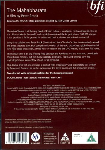 Peter Brook, a modern idők egyik legjelentősebb színpadi rendezője nyolc teljes évet dolgozott azon, hogy a hindu mitológia, vallás, történelem és filozófia hagyományait egymagában felmutató óriás-eposzt, a Mahábháratát színpadra állítsa. A Mahábhárata spirituális ereje felér a Bibliáéval, élményszerűsége az Iliásszal, varázslatos meseszövése az Ezeregyéjszaka hangulatával. Háborúskodás, hatalom, erkölcs, hűség és szerelem - örök emberi témák. Egy királyi család két ága közt folyik a harc, ám a mesének több mellékszála is van, amelyek hol tragikusak, hol komikusak. A mű kevéssé ismert a nyugati világban, de Brook és a színészek tehetségének köszönhetően még a járatlan nézőt is elbűvöli, szinte magába szippantja ez a varázslatos mesevilág. Ahogy Brook is mondja: "Minden kérdést érint ez a mű, amely minket is foglalkoztat manapság. A tény, hogy háromezer évvel ezelőtt született ez az eposz, nem jelenti azt, hogy távoli lenne. Sőt különös meseszerűsége, szenvedélye, ereje, humora csak hozzásegít a tisztább, egyszerűbb fogalmazáshoz." Habár a forrás indiai, Brook nem akart mindenáron autentikus lenni, hiszen a háromezer éves Indiát nem lehet visszahozni, a hindu vallás ősi jelképeit nem lehet megidézni. De India mégis jelen van a mű minden pillanatában. Jean Claude Carriere segítségével egy nyolc és fél órás színpadi előadást hoztak létre a műből, amivel aztán bejárták a világot. A nemzetközi társulat ( műhely?) tagjai játszottak szabad ég alatt, barlangban, kőfejtőben, ahol a természetes díszlet része volt a napkelte és a napnyugta is. Három év után az alkotók úgy határoztak, abbahagyják a fellépéseket. Ám hogy mégis a lehető legtöbb nézőhöz eljusson, filmverziót készítettek az előadásból. A négyévi munka eredményeképpen el is készült az öt és félórás tévéváltozat, és a közel háromórás mozifilm. A mostani televíziós változat műfaját tekintve is páratlan, megőrizte a színpadi atmoszférát, ugyanakkor a színészarcok közeli felvételeivel a legerősebb filmes hatást éri el.