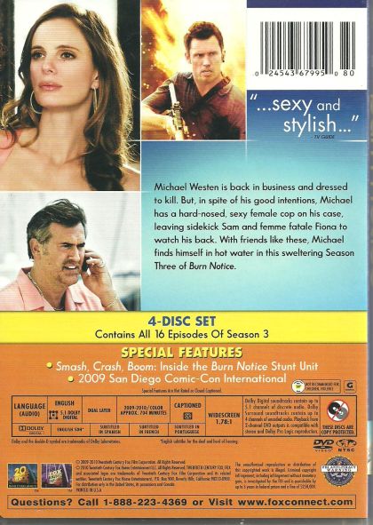 Covert intelligence operative Michael Westen has been punched, kicked, choked and shot. Now he's being burned, and someone's going to pay! When Michael receives a "burn notice", blacklisting him from the intelligence community and compromising his very identity, he must track down a faceless nemesis without getting himself killed in the process. Meanwhile, Michael is forced to double as a private investigator on the dangerous streets of Miami in order to survive. Fully loaded with sly humor, Burn Notice is a fresh spin on the spy genre with plenty of precarious twists to keep you guessing and enough explosive action to keep you riveted!