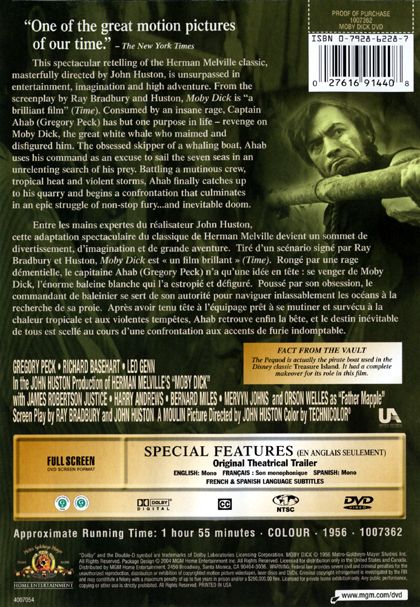 Ahab kapitánynak, a Pequod nevű hajó gazdájának van egy rögeszméje: amióta egy hatalmas fehér bálna, amelyet Moby Dicknek nevezett el, letépte az egyik lábát, eszeveszetten űzi az állatot, hogy harcban győzze le. Elszánt konokságával életveszélyes helyzetbe sodorja magát és a legénységét. A megszállott kapitány és emberei erejüket a végsőkig megfeszítve küzdenek a természet erői ellen. Végre sor kerül az utolsó összecsapásra a félelmetes állattal. A Herman Melville regénye alapján készült pergő cselekményű, csodálatos képi nyelvű, izgalmas kalandfilmet John Huston csaknem két évig forgatta. A gyártási költség az akkori idők többi filmjéhez képest szenzációs összegre, ötmillió dollárra rúgott.