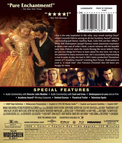 | Producer | Linda Bruce, Mark Cooper, Donna Gigliotti, Julie Goldstein, Marc Norman, David Parfitt, Bob Weinstein, Harvey Weinstein, Edward Zwick | |