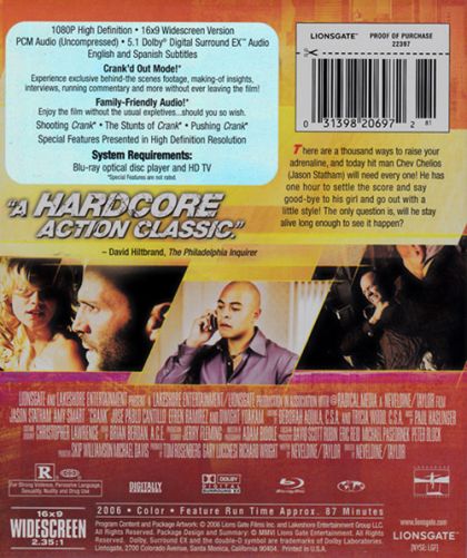 Chev Chelios is a professional assassin working for the West Coast crime syndicate. Chev's girlfriend Eve doesn't know what Chev does and Chev is planning to quit the crime syndicate so he can spend more time with her. But for Chev, things about to get very bad, when he learns he has been injected with a poison called "The Beijing Cocktail" by his rival Verona, which will kill him if his heart rate drops. Trying to stay alive and seeking help from friend, Kaylo and Doc Miles, to keep his heart pumping. Chev sets out to find answers as well as protecting Eve, and get his revenge on those who have betrayed him before the poison kills him.