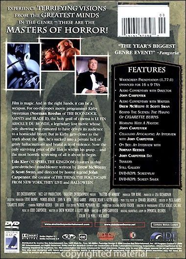 Film is magic. And in the right hands it can be a weapon. For on-the-ropes movie programmer Kriby Sweetman (Norman Reedus) the holy grail of cinema is Le Fin Absolue du Monde, a legendary lost movie whose sole showing was rumoured to have driven its audience to a homicidal frenzy. But as Kirby gets closer to the truth about the film, he's sucked into a private hell of grisly hallucinations and brutal acts of violence. Now the only surviving print of the film is within his graps... and the most horrific screening of all is about to begin