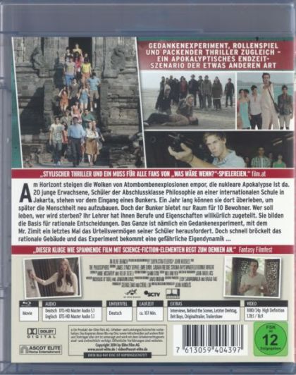 At an international school in Jakarta, a philosophy teacher challenges his class of twenty graduating seniors to choose which ten of them would take shelter underground and reboot the human race in the event of a nuclear apocalypse.