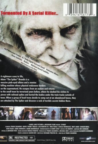 A nightmare come to life, the Spiker is a massive pink-eyed albino and a maniac killing machine whose physical endurance borders on the fantastic. He escapes from an asylum and returns to the small town he terrorized years before, where he slashed his victims to pieces with railroad spikes and buried the bodies under the train tracks outside of town. When a group of local teens decide to camp out at an abandoned house, they are attacked by the Spiker and discover a web of terrible secrets hidden there.