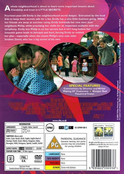 Emily Lindstrom, 14, is an aspiring concert violinist; she's spending the summer practicing for a big audition while her girlfriends are at camp. She's also got a thriving neighborhood business: for 50 cents, she'll keep your secret. Her mother is very pregnant, and her parents seem more concerned about the new baby than anything Emily cares about. A new family moves in next door; their son, Philip, 12, becomes Emily's friend. Eventually, the weight of Emily's secrets - her own, the ones she's keeping professionally, and a secret Philip tells her, send her life temporarily crashing down.