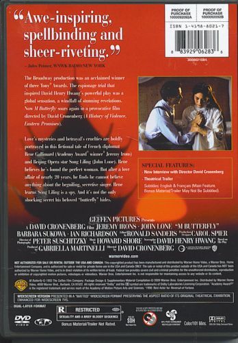In 1960s China, French diplomat Rene Gallimard falls in love with an opera singer, Song Liling - but Song is not at all who Gallimard thinks.